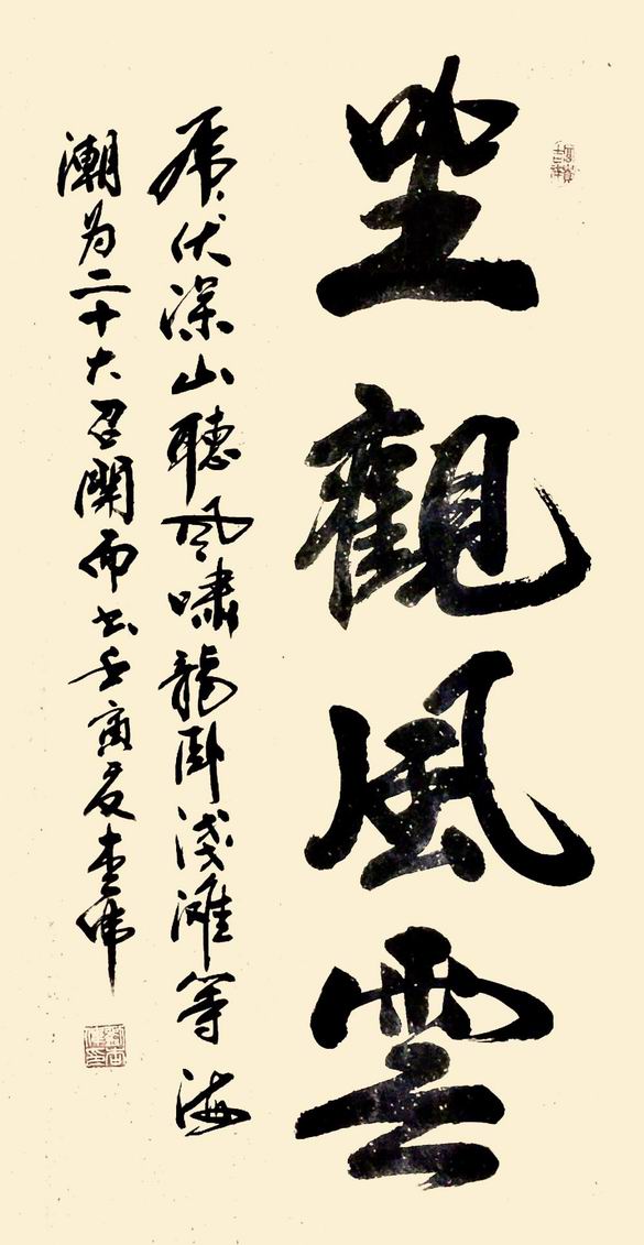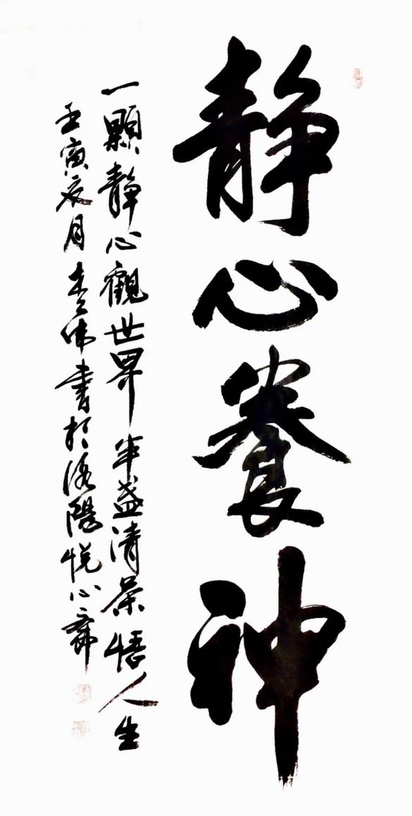 曾荣获全国百杰书法家称号及慈善书法家称号。本人习练书法三十余年,遍临古今名帖,领悟了先贤的书法真谛,铭记了现代大家的教诲,熟练的掌握了用笔、用墨之法。用笔灵动率意,笔饱墨沉、古拙浑厚。笔法娴熟、笔力遒劲。出新意于法度之中,寄妙理于豪放之外,气韵生动、神采飞扬。既有对传统的坚守,又有时代的创新,真正体现了历史的厚重与时代审美的结合。